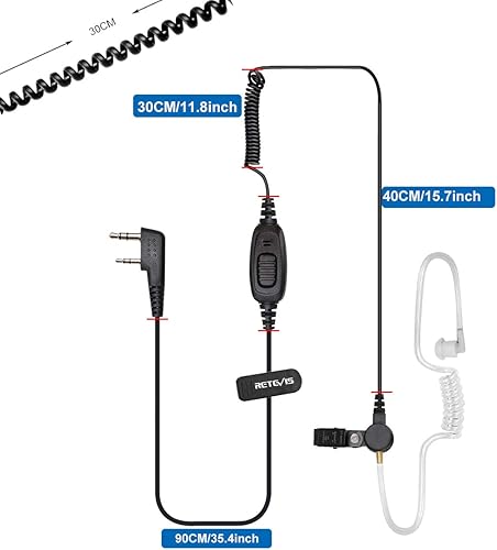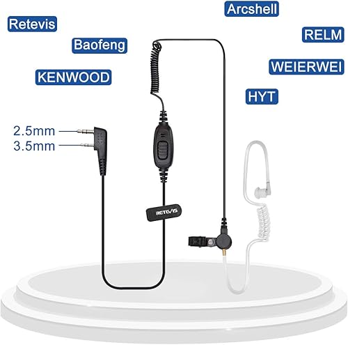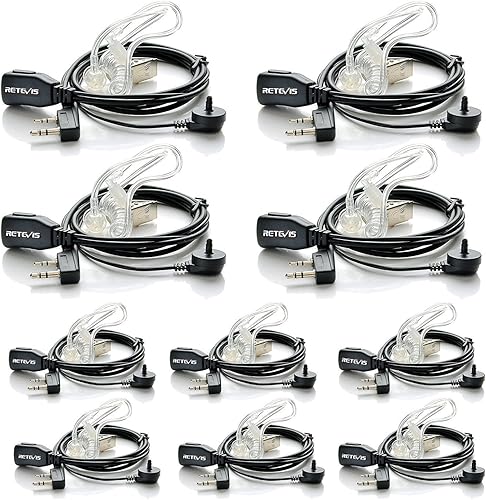 Retevis Cuffie radio a 2 pin con tubo sonoro compatibile con Walkie Talkie RT24 RT27 RT22 RT622 RT617 RT618 RT619 Baofeng BF-88E BF-888S Tyhbelle BF-88E Kenwood (10 pezzi)