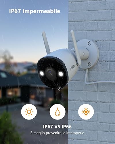 Imou 5MP Telecamera Wi-Fi Esterno, Videocamera Sorveglianza con Rilevamento IA Umano/Auto, Audio Bidirezionale, Visione Notturna a Colori, IP67, Compatibile con Alexa, 2,4GHZ, Bullet 3 5MP