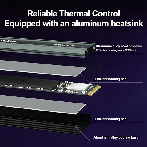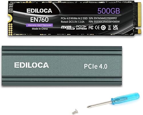 Ediloca EN855 SSD da gioco interno con dissipatore di calore 4 TB PCIe Gen4, NVMe M.2 2280, fino a 7400 MB/s, unità a stato solido, configurazione cache DRAM, compatibile con PS5 e PC