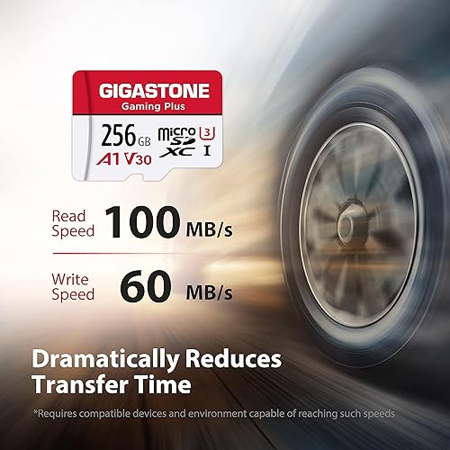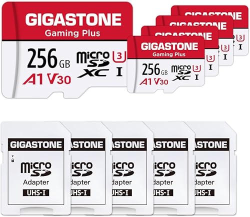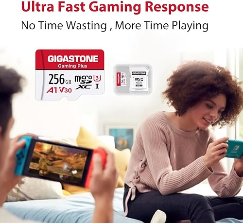 Gigastone Scheda di memoria Micro SDXC da 256 GB Gaming Plus Seriale, Velocità di riproduzione fino a 100 MB/s. Compatibile con Switch Dashcam GoPro Canon Nikon DJI Drone, A1 U3 V30 con adattatore SD.