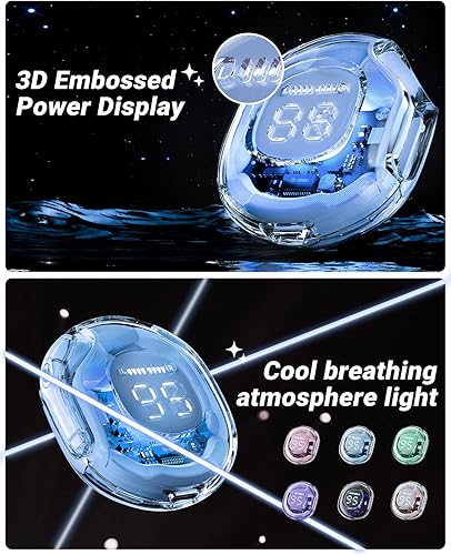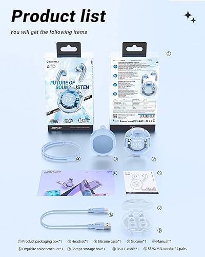 ACEFAST T8 Cuffie Bluetooth, Auricolari Bluetooth 5.3 con Stereo HiFi, Cuffie Wireless Sport in Ear con Microfono, Cuffie Senza Fili Cancellazione Rumore, Cuffiette Trasparente,Azzurro