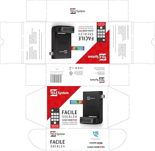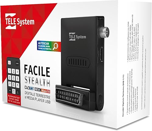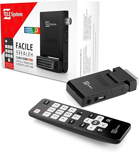 Tele System Mini Decoder Digitale Terrestre FACILE STEALTH con Funzione Autoscan e LCN, Lettore Multimediale USB Integrato - Telecomando Easy Incluso - Installazione Plug & Play via SCART o HDMI