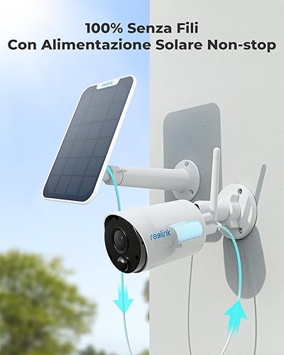 Reolink Telecamera Wi-Fi Esterno con Batteria Solare, 3MP Videocamera Sorveglianza Senza Fili, Rilevamento di Movimento PIR, Sirena, Time-lapse, Visione Notturna, Audio Bidirezionale, Argus Eco (Nero)