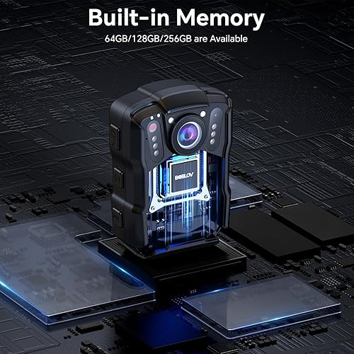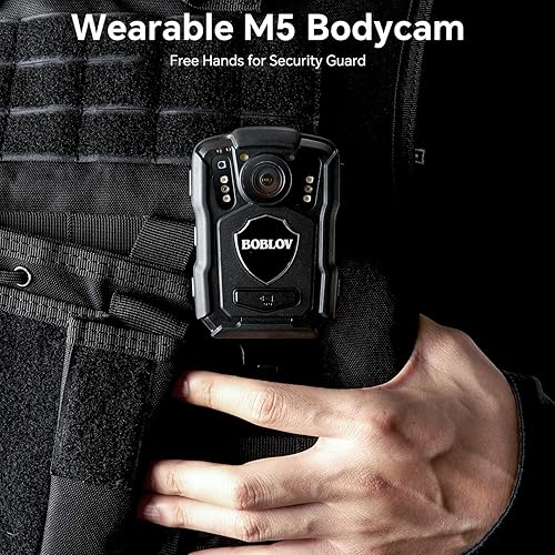 BOBLOV M5 128GB Fotocamera corpo di polizia, GPS 1440P montata sul corpo, batteria incorporata 4200MAH Bodycam, IP67 e IR per forze dell'ordine con supporto di aspirazione per auto (128GB)