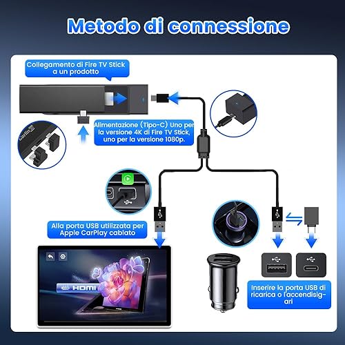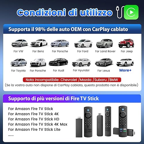 CarlinKit Fire DriveLink - Adattatore HDMI converte CarPlay cablato in HDMI per Fire TV Stick Streaming, ingresso HDMI senza soluzione di continuità per lo streaming di Netflix, YouTube, TikTok e