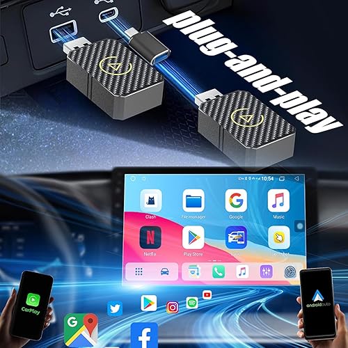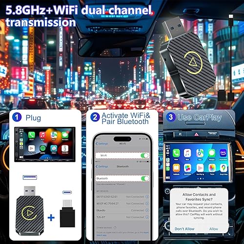 Adattatore Carplay Wireless, Adattatore Carplay Connesso Via Bluetooth, Carplay Wireless e Android Auto 2 in 1 Box per Iphone e Android (Nero)