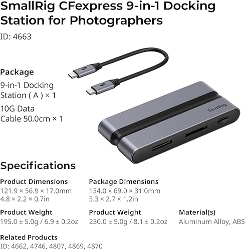SMALLRIG 9 in 1 CFexpress Type A Card Reader Docking Station con USB3.2 (Gen 2) 10 Gbps, Lettori SD/TF/CFexpress Type A, Porte USB-A/USB-C/HDMI/Gigabit Ethernet, per iPhone per Mac - 4663