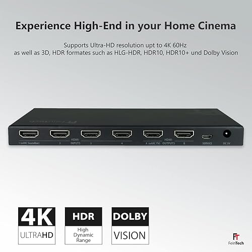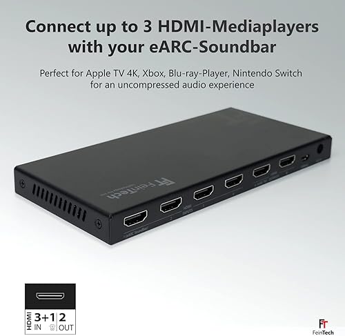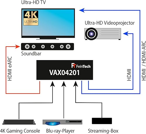 VAX04201 HDMI eARC Pass Matrix Switch 4x2 UHD 2 schermi (TV e videoproiettore) condividono una soundbar