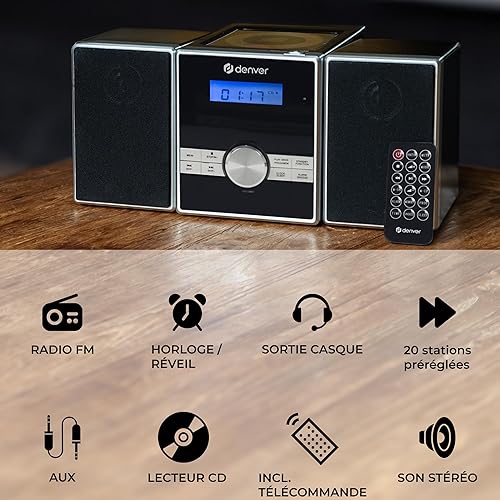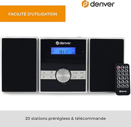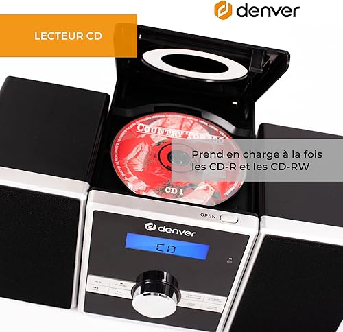 Denver Sistema audio micro MCA-230 con radio PLL-FM, lettore CD e ingresso AUX, nero/argento