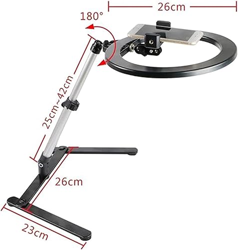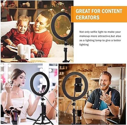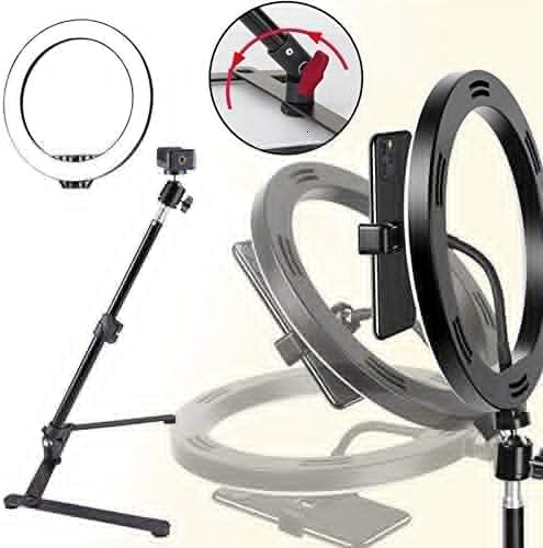XUMI Anello luminoso a LED a intensità variabile da 10 pollici con supporto e supporto per telefono, scrivania treppiede regolabile per Youtube Video, Photography, Selfie, Vlog, Live Streaming, nero