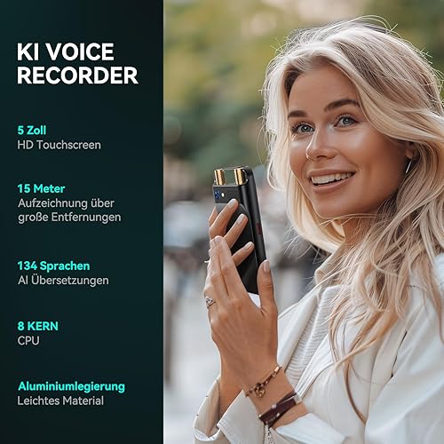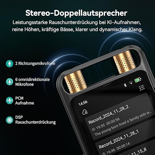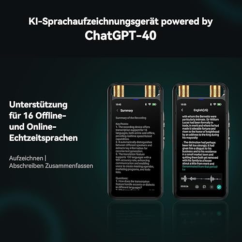 Note AI Registrazione vocale digitale One Touch con scheda da 64 GB, supporto 134 lingue trascrizione a testo,Riassumere, Registratore Audio per riunioni, interviste,lezioni