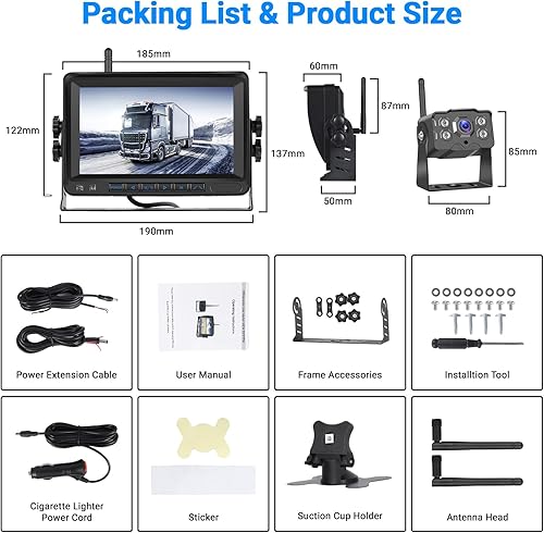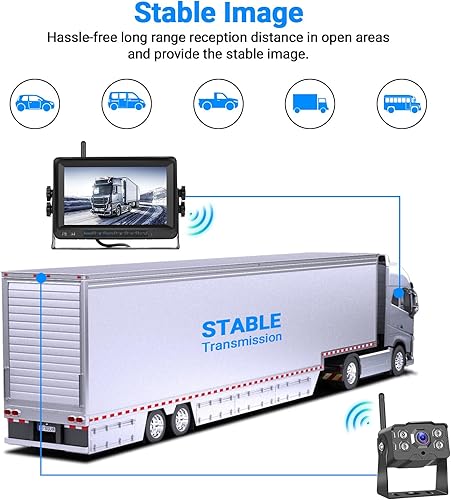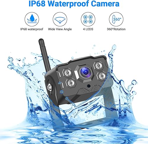 Hikity Wireless HD 1080P Retromarcia Auto Kit con 7 Pollici IPS Touchscreen IP68 Waterproof Telecamera Posteriore per Furgoni, Auto, Camion, Pick-Up, SUV 12-36V