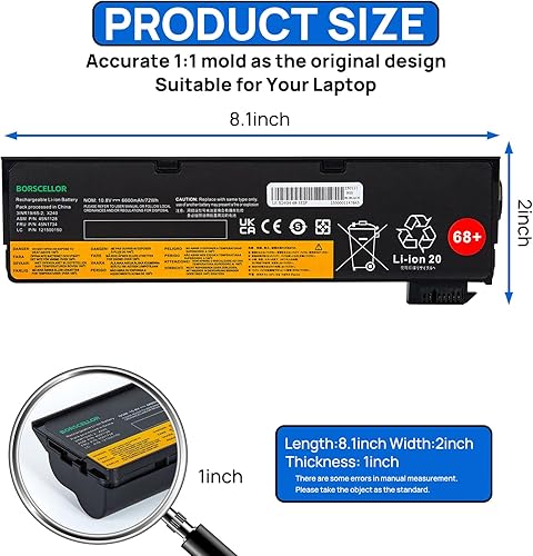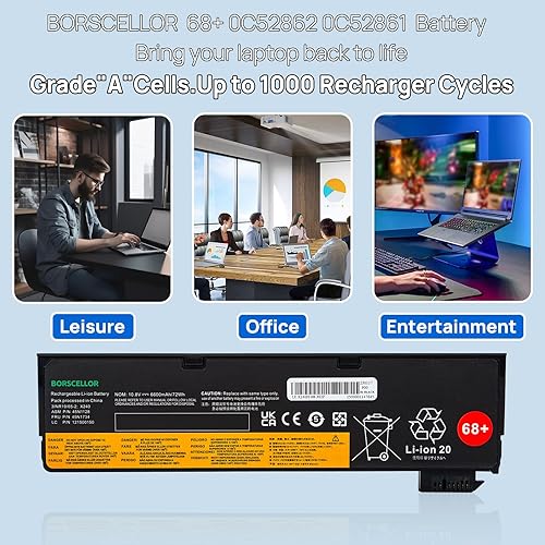 BORSCELLOR 68+ 0C52862 0C52861 Batteria per Laptop Lenovo ThinkPad T440 T440s T450 T450s T460 T460p T470p T550 T560 X240 X250 X260 X270 W5550 550s L. 450 L460 L470 P50s 45N1126 45N1127