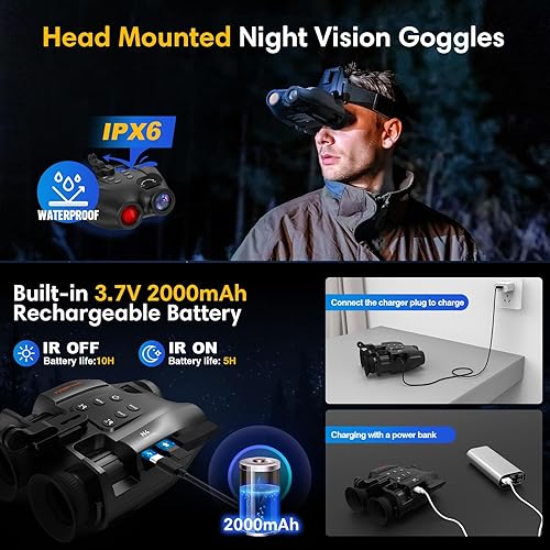 Night Vision Goggles,Head-Mounted Digital Infrared Night Vision Binoculars for Adults,5X Digital Zoom,HD Large Screen Binoculars Perfect for Hunting Outdoor Observation with 32GB TF Card