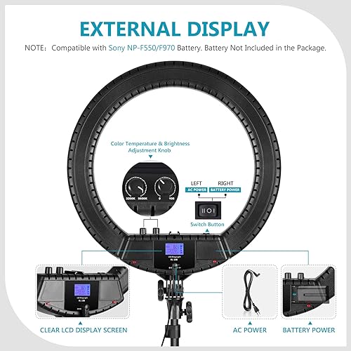 Neewer LED Luce dell’Anello Bicolore da 45cm con Display LCD e Supporto per Batteria,Supporto da Max 157cm e Borsa da Tasporto per Ripresa di Trucco dal vivo e Ripresa di Selfie Video YouTube
