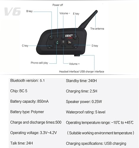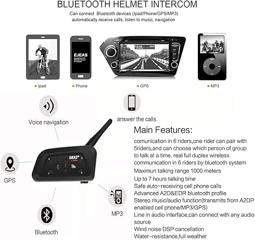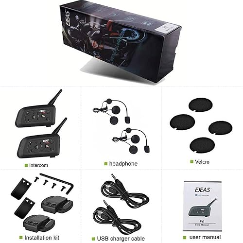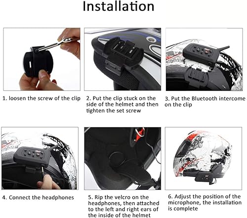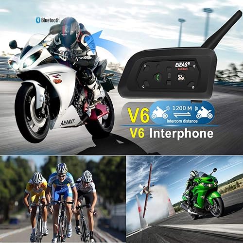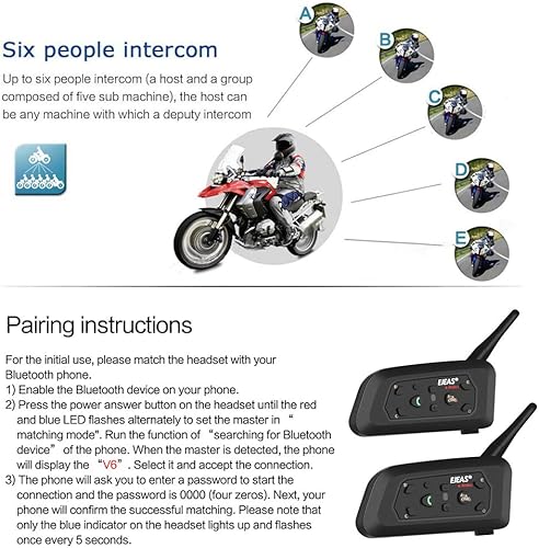 V6 Pro 1200M Impermeabile Interfono Moto, Moto Auricolare Bluetooth con Cancellazione del Rumore, Comunicazione Bluetooth per Casco Moto con Fino a 6 Riders (2 Pezzo)