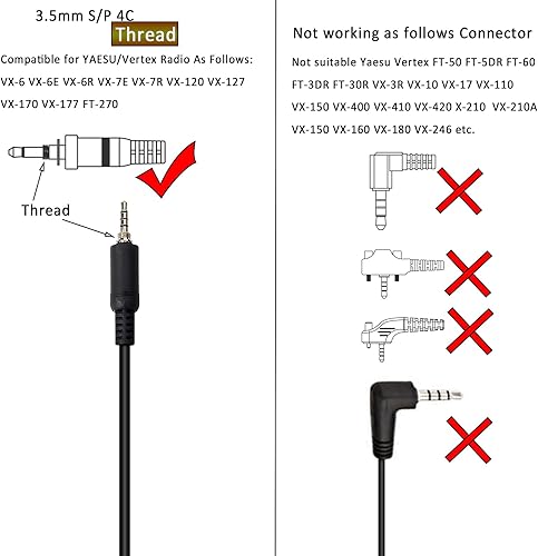 HYS Walkie Talkie Auricolare a forma di G con microfono compatibile con Yaesu Vertex VX-6 VX-6E VX-7E VX-7R VX-120 VX-127 VX-170 VX-177 FT-270 radio a 2 vie
