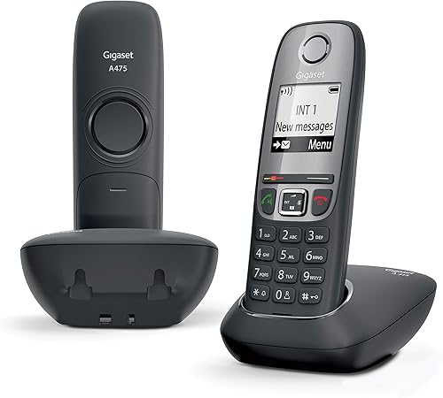 Gigaset AS475 Telefono Cordless, Tastiera Retroilluminata, Ampio Raggio d'Azione, Numeri Grandi sul Display, Rubrica fino a 100 contatti, Black List, Nero/Grigio