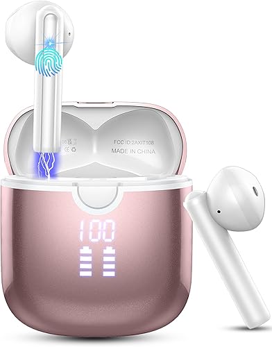 Cuffie Bluetooth, Auricolari Bluetooth 5.4 Stereo HiFi, 40 Ore Cuffie Wireless In Ear ENC Cancellazione Rumore e 4 Mics, IP7 Impermeabile Cuffiette, Cuffie Senza Fili USB-C Carica Rapida, LED Display