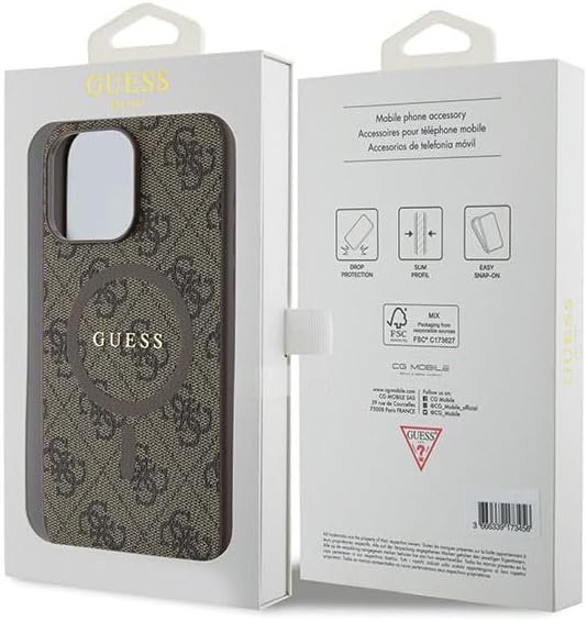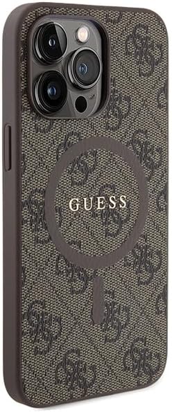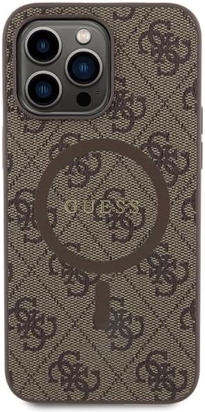 Guess GUHMP15XG4GFRW Custodia per iPhone 15 PRO Max 6,7 Pollici Custodia Rigida Marrone Collezione 4G Pelle Logo in Metallo