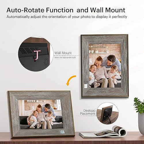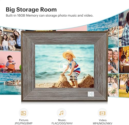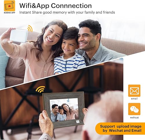 KODAK Cornice Digitale WiFi 8 Pollici Legno, Smart Cornice Foto Touchscreen IPS Cornice Elettronica Cloud con App, Memoria 16GB, Supporto Scheda SD, USB, Condivisione di Immagini Musica Video