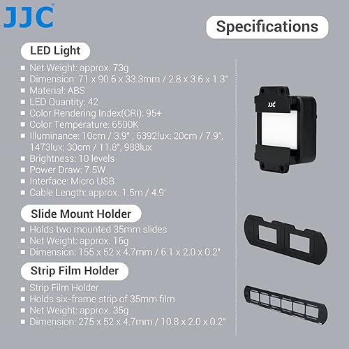 JJC Slide & Film Remake, Con 1 Supporto Per Diapositiva da 35 mm, 1 Supporto Per Pllicola e Luce LED, 10 Livelli di Luci LED 6500K per La Copia Negativa