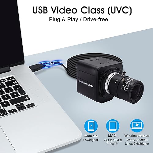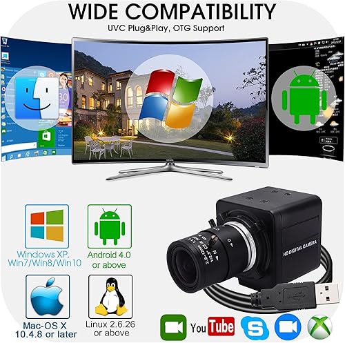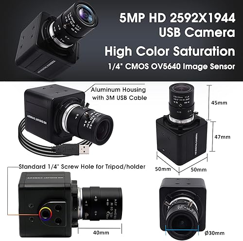 Svpro USB Camera con obiettivo zoom 2.8-12mm, 5MP HD Webcam messa a fuoco manuale con sensore CMOS OV5640, USB Desktop con attacco a vite 1/4, Plug&Play PC Computer Camera