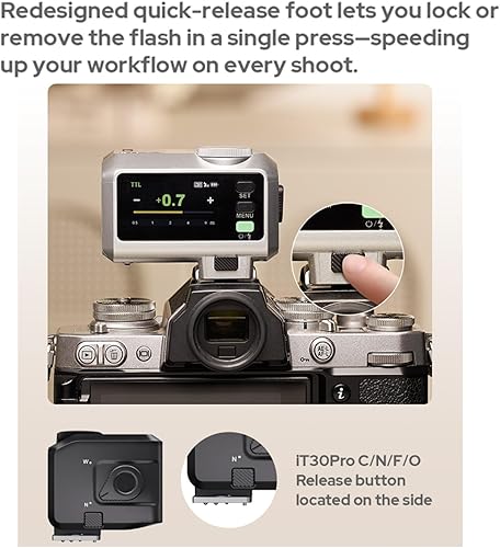 Godox iT30Pro F iT30Pro-F Flash TTL per fotocamere Fujifilm Fuji, GN15, tempo di ricarica di 1,5 secondi, flash a piena potenza 560, HSS 1/8000, wireless 2.4G, flash touchscreen (argento)