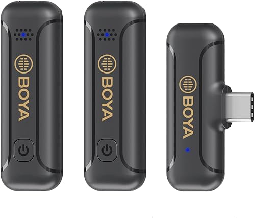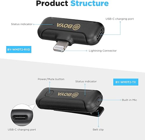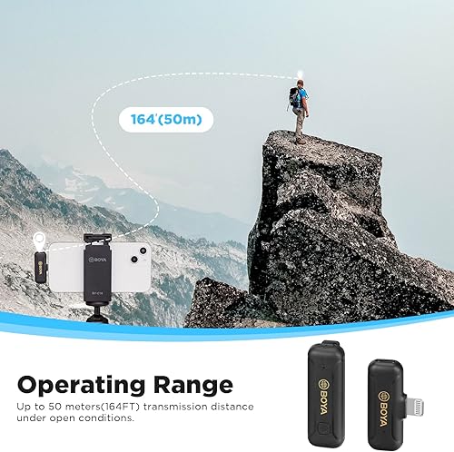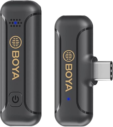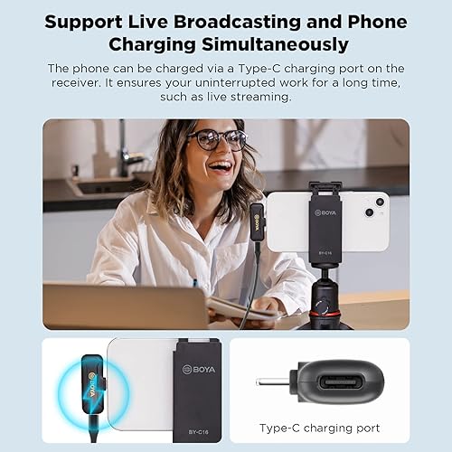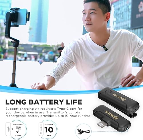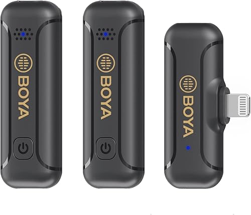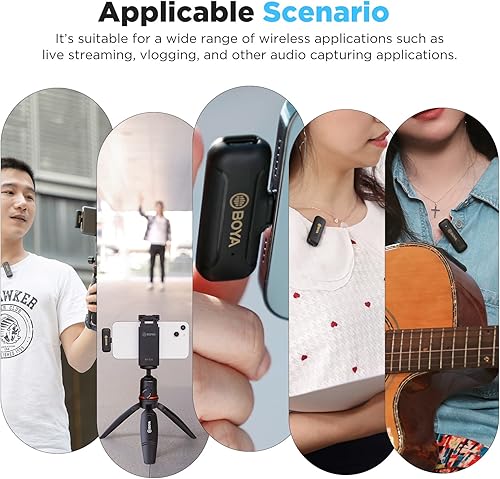 BOYA Microfono Lavalier Wireless per iPhone iPad, 2.4GHz Plug Play Microfono Clip-on per Intervista Video Podcast Vlog Registrazione YouTube (TX+RX)