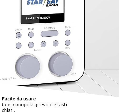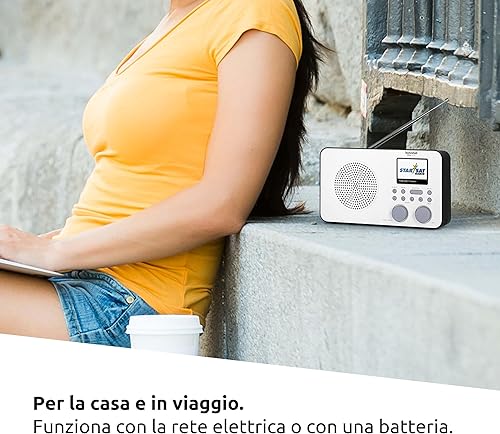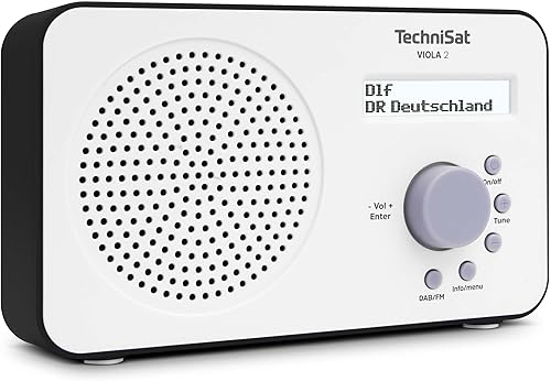 TechniSat VIOLA 2 - Radio DAB portatile (DAB+, VHF, Altoparlante, Ingresso per cuffie, Display a 2 righe, Pulsante di controllo, Compatta, 1 Watt RMS), Bianco/Nero
