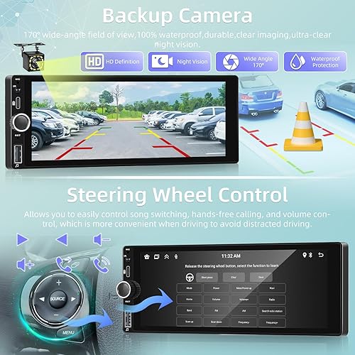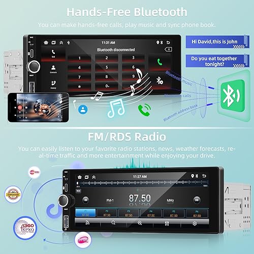 Autoradio 1 Din con Carplay Wireless e Android Auto - Radio con Schermo Touchscreen IPS da 6,86 Pollici con EQ, Radio FM/RDS, Bluetooth, Porta TF/AUX/USB/TYPE-C, SWC + Telecamera di Backup