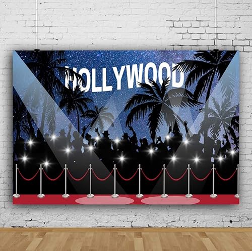 YongFoto 3x2m Vinile Fondale Foto Hollywood Stage Scenografia Faretti Notte stellata Sfondo Fotografico Fotografia Sfondi per foto Partito Studio Puntelli 10ft