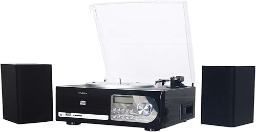 Majestic TT 38R CD TP USB SD - Giradischi 33/45/78 Giri, Lettore CD/MP3, Cassetta, Ingresso USB/SD Recorder, Nero