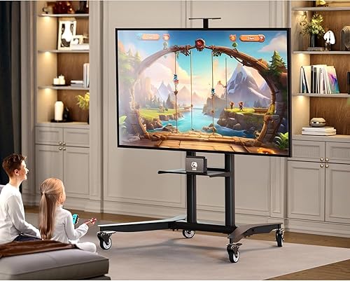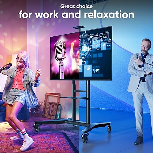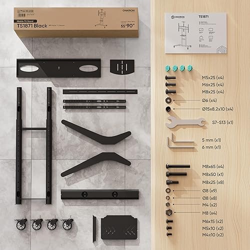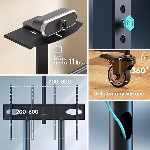 Staffa TV da 55 a 90 pollici - Supporto TV da Pavimento con Peso fino a 75 kg - Porta TV da Terra Mobile con VESA 200x200-800x600 mm/Piedistallo Televisore Altezza Regolabile TS1871-B Nero