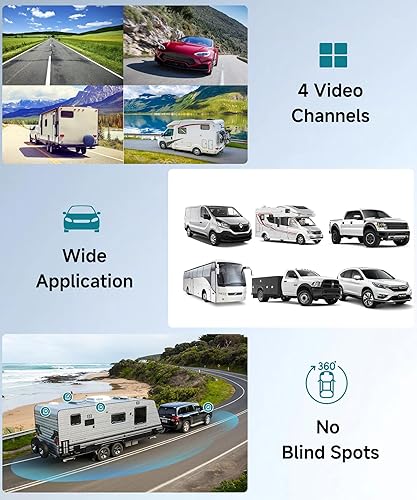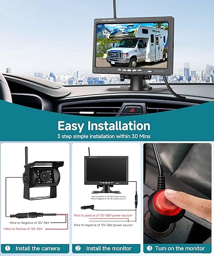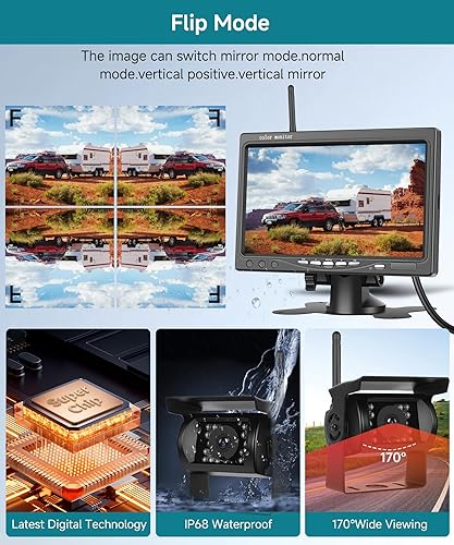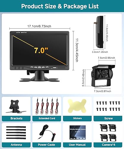 Podofo 4*Telecamera posteriore wireless con monitor da 7 pollici IP68 Visione notturna grandangolare, monitor AHD IPS Telecamere per la retromarcia wireless per auto Camper/Caravan/Camion,BSD