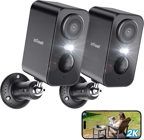 ieGeek 2K Telecamera Wi-Fi Esterno/Interno Senza Fili, Videocamera Sorveglianza WiFi Batteria, Rilevamento Movimento PIR, Sirena, Visione Notturna a Colori, 2 Vie Audio, Locale/Cloud, 2 pz