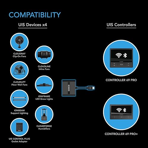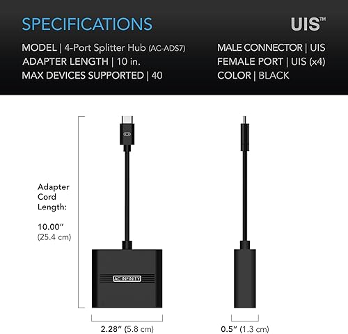 AC Infinity UIS Splitter Hub, 4-Port Adapter Dongle, Connector Cable Cord to Share UIS Programming for LED Grow Lights, EC Motor Fans, and Humidifiers