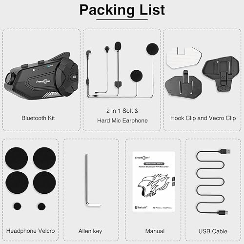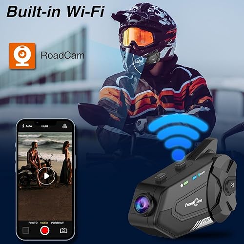 OBEST Cuffie Bluetooth per moto con fotocamera 2K, 1000 m, impermeabile walkie-talkie per 6 gruppi di conducenti con musica condivisa/Bluetooth 5.0/128G TF carte/microfono 2 in 1