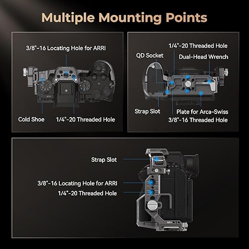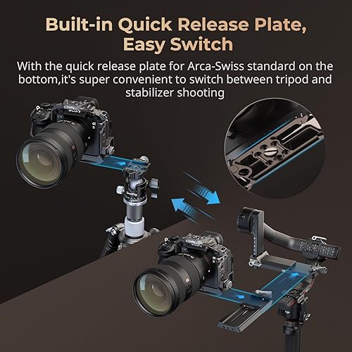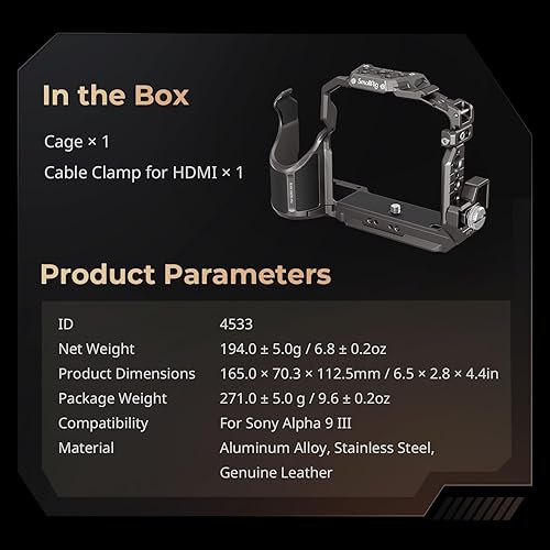 SMALLRIG Cage per Sony Alpha 9 III, Piastra per Arca, Compatibile con Stabilizzatore RS 2/RSC 2/RS 3/RS 3 Pro, con Morsetto Cavo per HDMI, Cold Shoe, Presa QD, NATO Rail e Fori Filettati - 4533