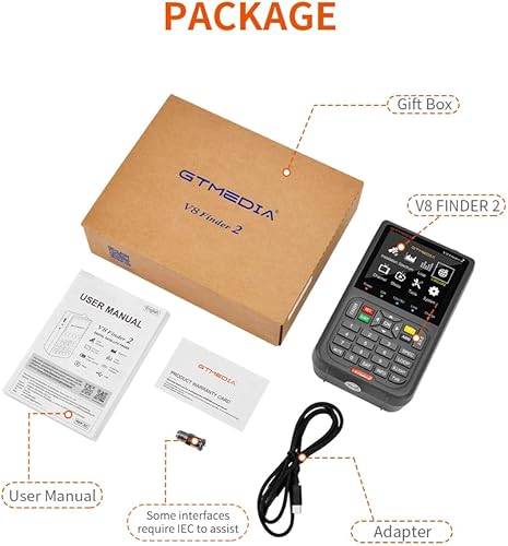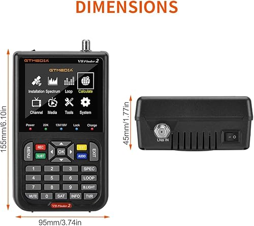 GT Media V8 FINDER2 - Localizzatore satellitare digitale e misuratore di segnale DVB-S/S2 H.264 HD 1080P con display LCD da 3,5' da 7,4 V/4000 mAh, ideale per la configurazione dell'antenna parabolica