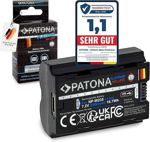 PATONA PLATINUM NP-W235 Batteria 2600mAh USB-C Input compatibile con Fuji Fujifilm GFX-50s II GFX-100S GFX100 II X-H2 X-H2S X-S20 X-T4 X-T5 GFX 50 100 100S GFX50 XH2 XH2S XS20 XT4 XT5 NPW235 NP W235