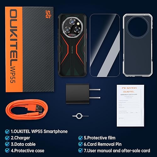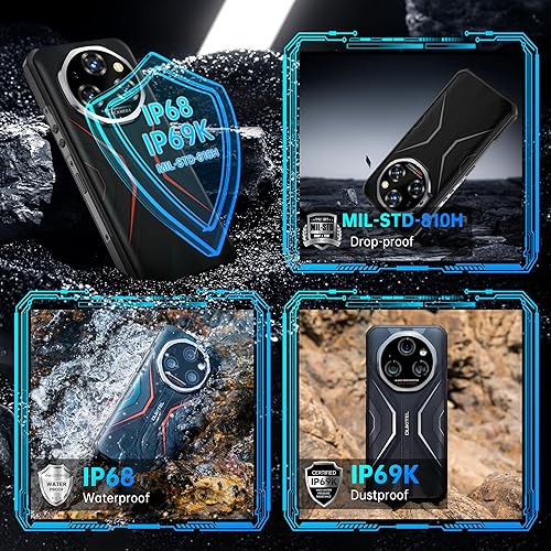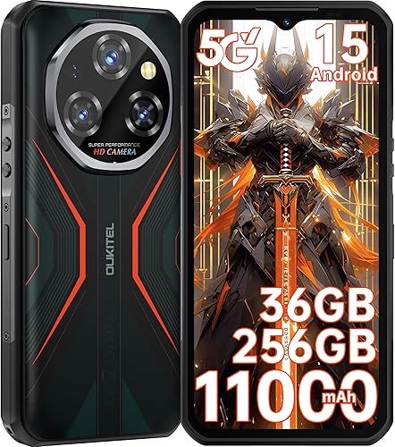 OUKITEL WP55 Rugged Smartphone 5G Andriod 15, 36GB+256GB/2TB Telefono Indistruttibile 11000mAh, 108MP+32MP+8MP Rugged Phone, 120Hz 6.6' FHD+, IP68/69K, Fingerprint/Face ID/Dual SIM/OTG/NFC/GPS Nero