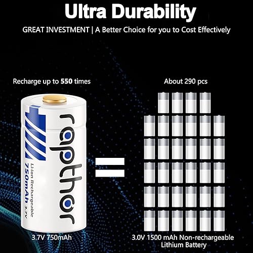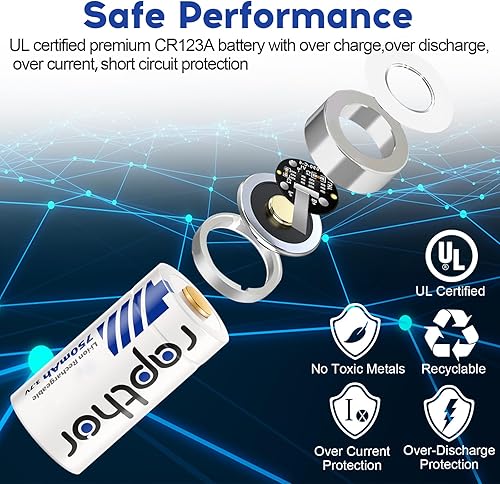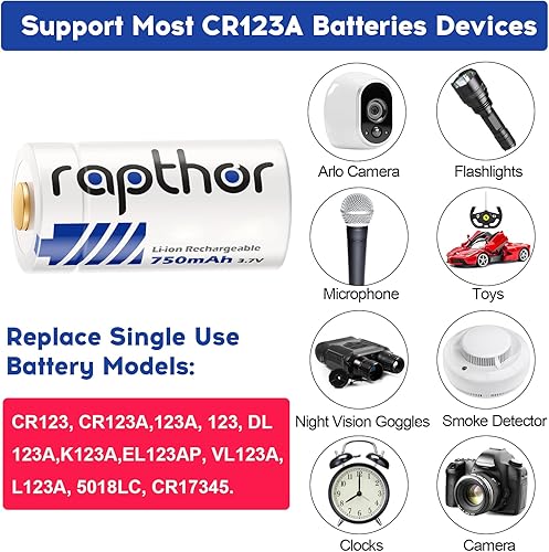 Rapthor Ricaricabile 123A Batteria 900mAh 3.7V Compatibile con Arlo Wireless Security Camera VMC3030/VMK3200/VMS3330/3430/3530 Smart Sensors Alarm System (900-8Pack)