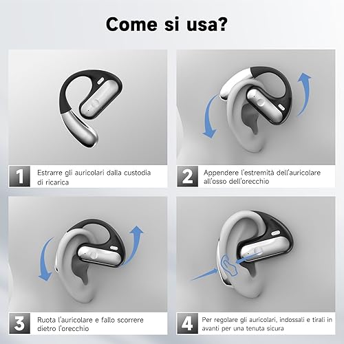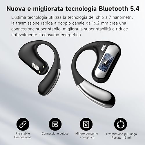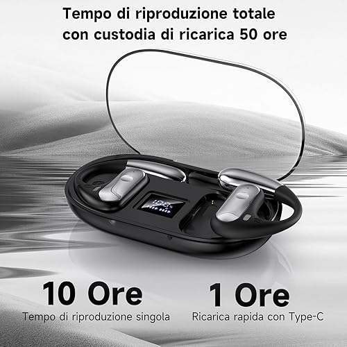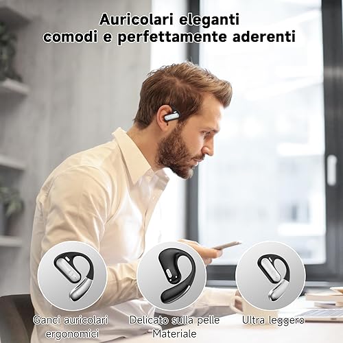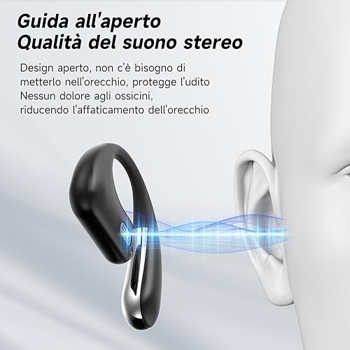 EUQQ Cuffie sportive Bluetooth-Cuffie wireless con tecnologia Bluetooth 5.4,cuffie a conduzione ossea migliorate dal design aperto,50 ore di riproduzione,perfette per sport,corsa e attività all'aperto