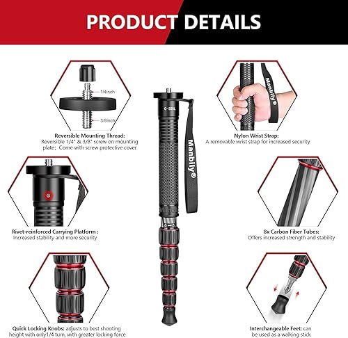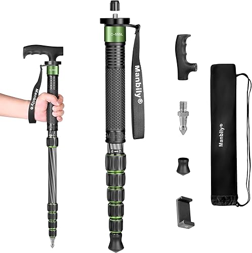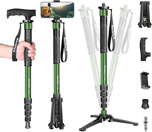 Manbily Monopiedi per fotocamere 71 pollici con piedi, bastone da passeggio 180 cm fotocamera monopiede Mount alluminio leggero con base treppiede 5 sezioni max 10 kg per viaggio DSLR Canon Nikon Sony