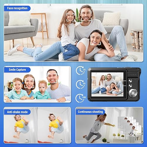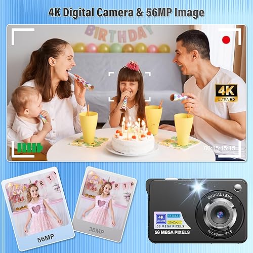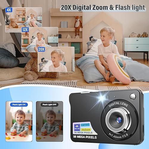 Macchina Fotografica Digitale 56MP 4K Fotocamera con Zoom 20X Ricaricabile Macchina Digitale Compatta con Scheda da 32GB per Bambini Studenti Principianti (Nero)