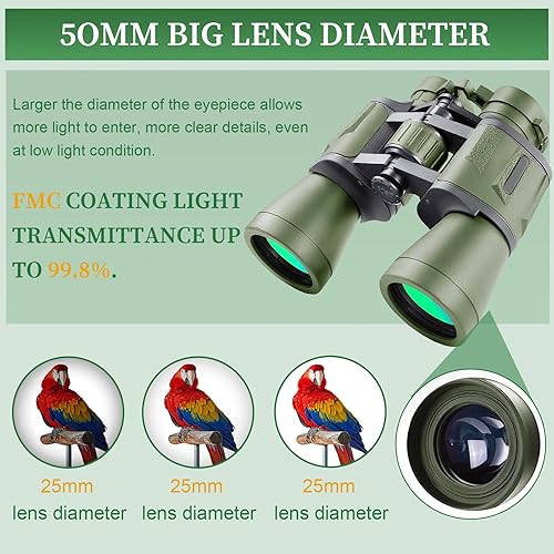 Binocolo HD 10x50 per Adulti, Binocolo Compatto con Prisma BAK4 HD e Lente FMC, Impermeabile per Concerti, Birdwatching, Escursionismo, Safari, Caccia e Visite Turistiche