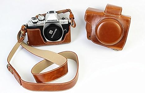 Protezione fondo completa apertura cuoio della macchina fotografica Versione PU Custodia protettiva Borsa con treppiede design compatibile per Olympus OM-D E-M10 Mark 2 EM10 Mark II con 14-42mm F3.5-5.6 lente EZ con spalla laccio Cintura Marrone
