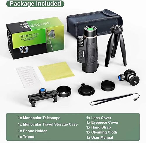Ant Warrior Monocolo, Telescopio Monoculare, 12X50 Cannocchiale Monoculare, Monocolo Professionale Potente, BAK4 lenti HD Telescopio Monocolo, per birdwatching, caccia, concerti