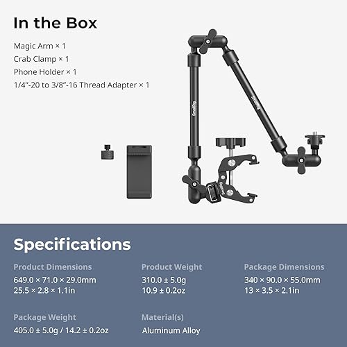 SMALLRIG Braccio Magico da 22' con Kit Morsetto a Granchio, Supporto e Morsetto per Fotocamera da Tavolo Flessibile, Braccio Articolato, per Luce, Webcam, Microfono, Action Camera - 4766